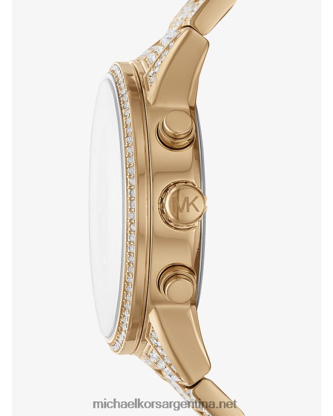 diseñoRadiante y refinado, el reloj Ritz combina acero inoxidable en tono dorado con una correa de pulsera inspirada en la moda masculina para lograr un acabado elegante y atemporal. la pantalla del cronógrafo brinda funcionalidad, mientras que los adornos pavimentados brindan el máximo brillo.